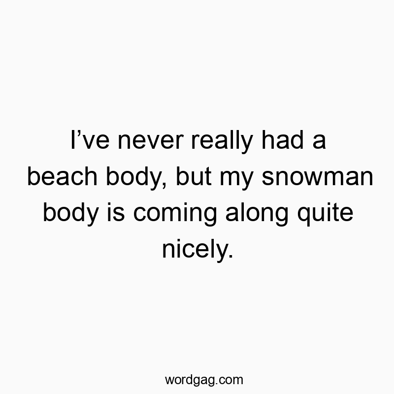 - Iβve never really had a beach body, but my snowman body is coming along quite nicely.