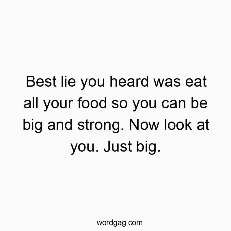 🤣 Oh, the good old "eat all your food to be big and strong" lie! But hey, no one said anything about being strong AND slim, right? Looks like someone took that advice a bit too literally... Just big, indeed! 💪🍔🤷♂️ - When I’m at a party, I pretend to be Pac-Man. I eat everything and run away from anyone coming close to me.