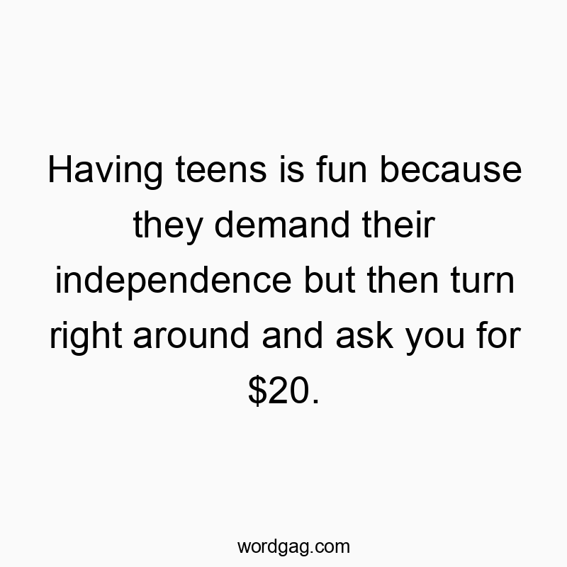 "Oh, the joys of raising teens – the masters of independence and the art of wallet whispering simultaneously! 🤑👩👧👦💸 #TeenageTales #ParentingAdventures" - The only hot singles in my area are in my wallet.