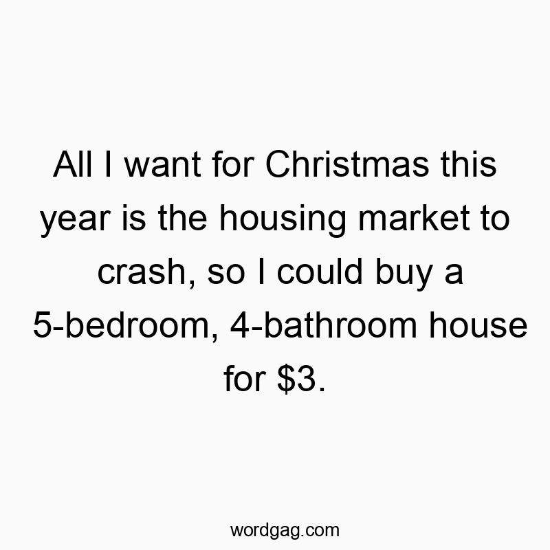 - All I want for Christmas this year is the housing market to crash, so I could buy a 5-bedroom, 4-bathroom house for $3.