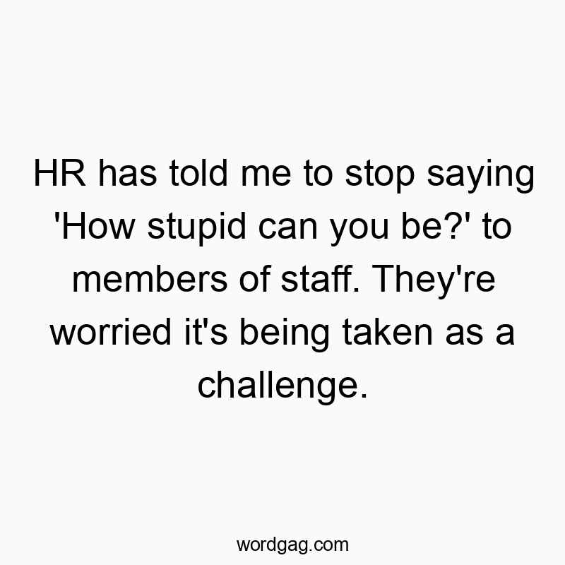 Oh, HR always trying to ruin the fun! 🤣 Remember folks, asking 'How stupid can you be?' is not a challenge, it's just a rhetorical question...maybe. 😜 #HRwoes #OfficeHumor - After I drink coffee, I show my empty cup to the IT guy and say that I have successfully installed Java. He hates me.