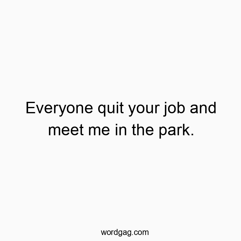 Everyone quit your job and meet me in the park. Posted onMar 12, 2026Mar 12, 2026 by slickboy in Funny Quotes 💾 Save Image Commentary:I'll be the one with the dream job application in one hand and a frisbee in the other. Related funny posts 😂 It’s legally required that you lose a frisbee onto the roof within one week of purchase. Interviewer: “What did you learn from your previous job?” Me: “That I need a new job.” Please don’t ask me about my dream job. I would never work in my dreams. Getting paid to sleep would be such a dream job. Quitting my job to pursue my true passion: not having a job.