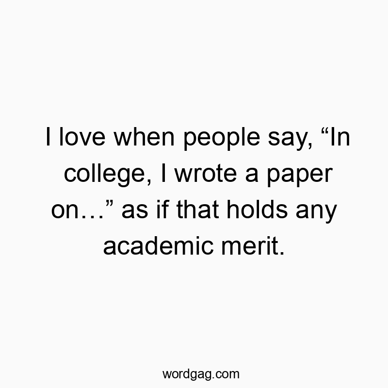 I love when people say, βIn college, I wrote a paper onβ¦β as if that holds any academic merit.