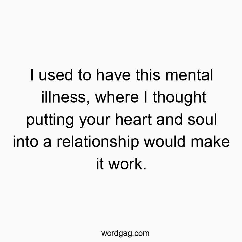I used to have this mental illness, where I thought putting your heart and soul into a relationship would make it work.