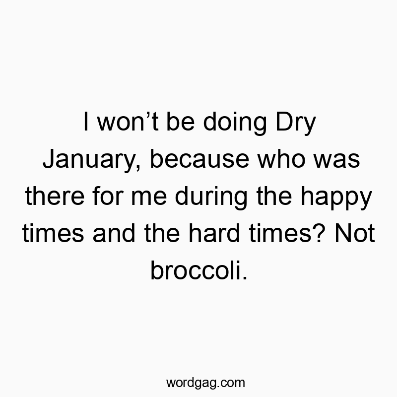 I won’t be doing Dry January, because who was there for me during the happy times and the hard times? Not broccoli.