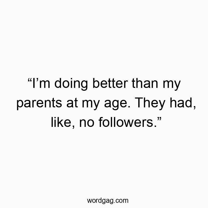 β€œI’m doing better than my parents at my age. They had, like, no followers.”