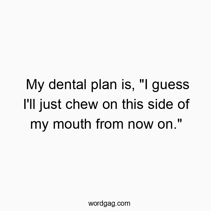 My dental plan is, “I guess I’ll just chew on this side of my mouth from now on.”