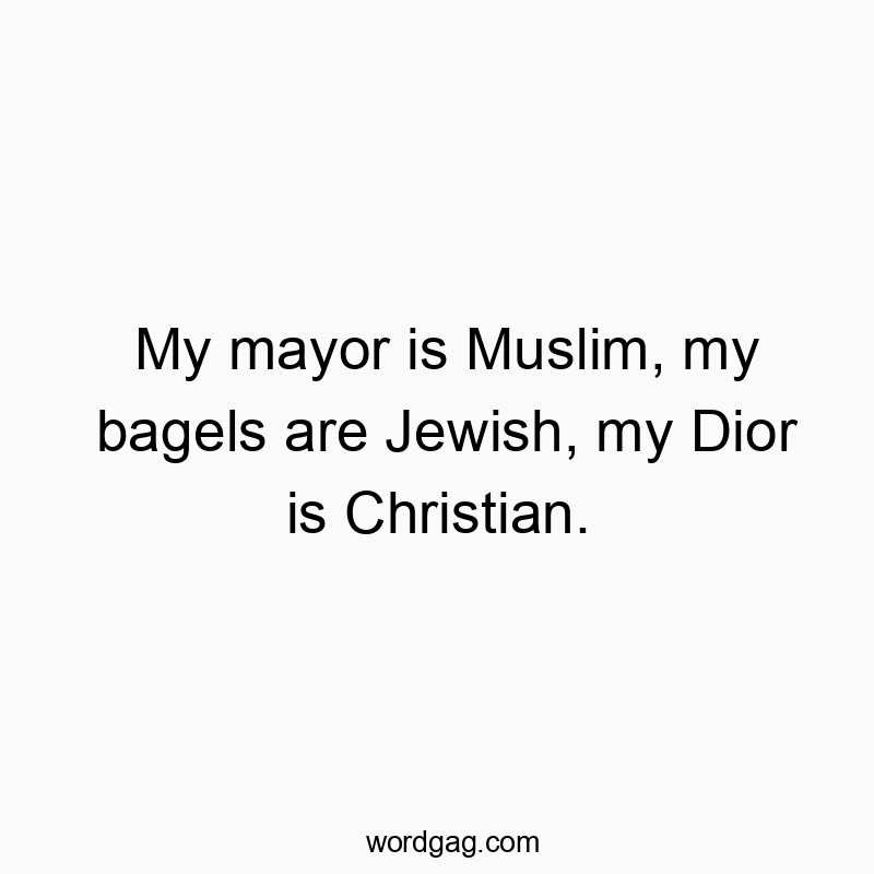 My mayor is Muslim, my bagels are Jewish, my Dior is Christian. Posted on2 weeks ago2 weeks ago by slickboy in Funny Quotes 💾 Save Image Commentary:Sounds like you're living in the most deliciously diverse sitcom ever! 🥯😁🕌 Related Funny Posts 🤝 White, black, yellow, brown, Democrat, Republican, man, woman, straight, gay, transgender, Jew, Christian, Muslim, young and old — you will all taste the same to the zombies. Going to church doesn’t make you a Christian any more than going to a garage makes you a car. Why is it called Christian community and not Holyfans? Study so hard until Dior is like Shein to you. Actually, this email could’ve been a meeting. We could’ve spent an hour on the clock talking shit and gossiping. Someone could’ve brought bagels.