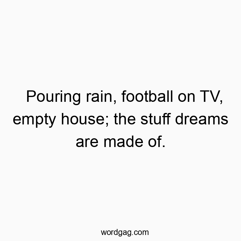 Pouring rain, football on TV, empty house; the stuff dreams are made of.