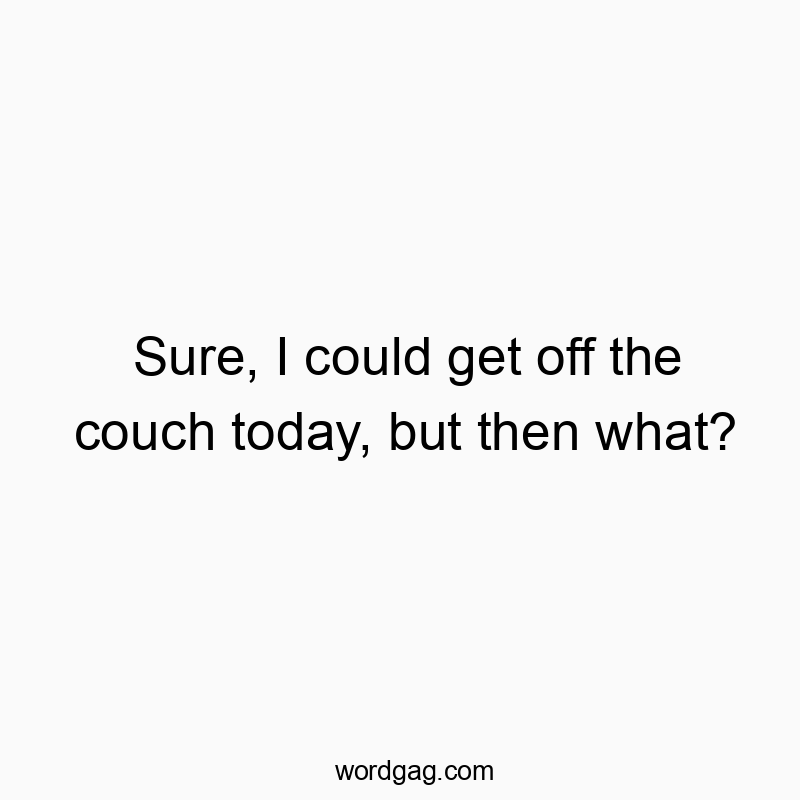 Sure, I could get off the couch today, but then what? Posted on4 months ago4 months ago by slickboy in Funny Quotes 💾 Save Image Commentary:Why ruin a perfectly good relationship with my couch? πποΈπΏ Related Funny Posts π€ βYouβre an athlete,β I whisper to myself, as I begin my third attempt to get out of the couch. I hate having a messy house. Not enough to actually clean it, but enough to give it a disgusted stare while I peacefully relax on the couch. I was gonna get on the treadmill, but then the couch will get sad. I was actually about to do a workout when the couch threw itself protectively under me. I don’t run from my problems. I sit on my couch, play on my phone, and ignore them like all other adults.
