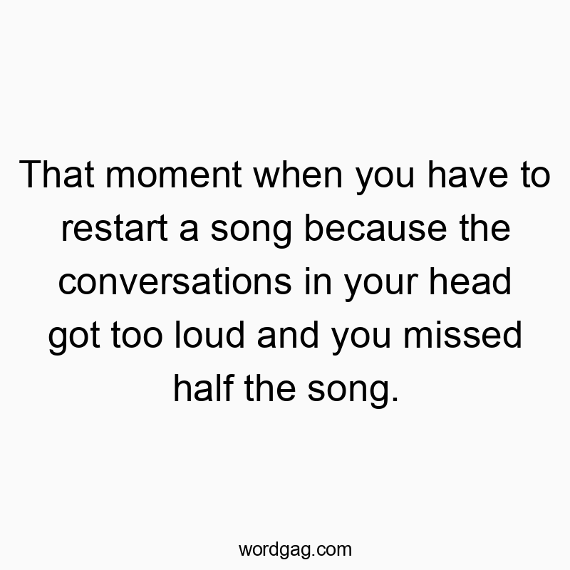 That moment when you have to restart a song because the conversations in your head got too loud and you missed half the song.