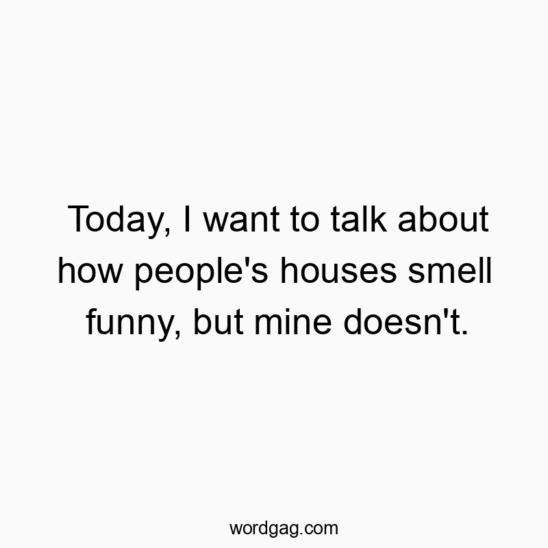 Today, I want to talk about how people’s houses smell funny, but mine doesn’t.