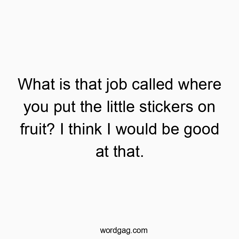 🍎🍌🍊 "Ah yes, the prestigious profession of a 'fruit stickerer' – where attention to detail and precision are essential! 🤹♂️ Who knew perfectly placing those tiny stickers could be such a ripe career choice? 🍇🍐 Remember, it's all about that peel-fection! 🤣"